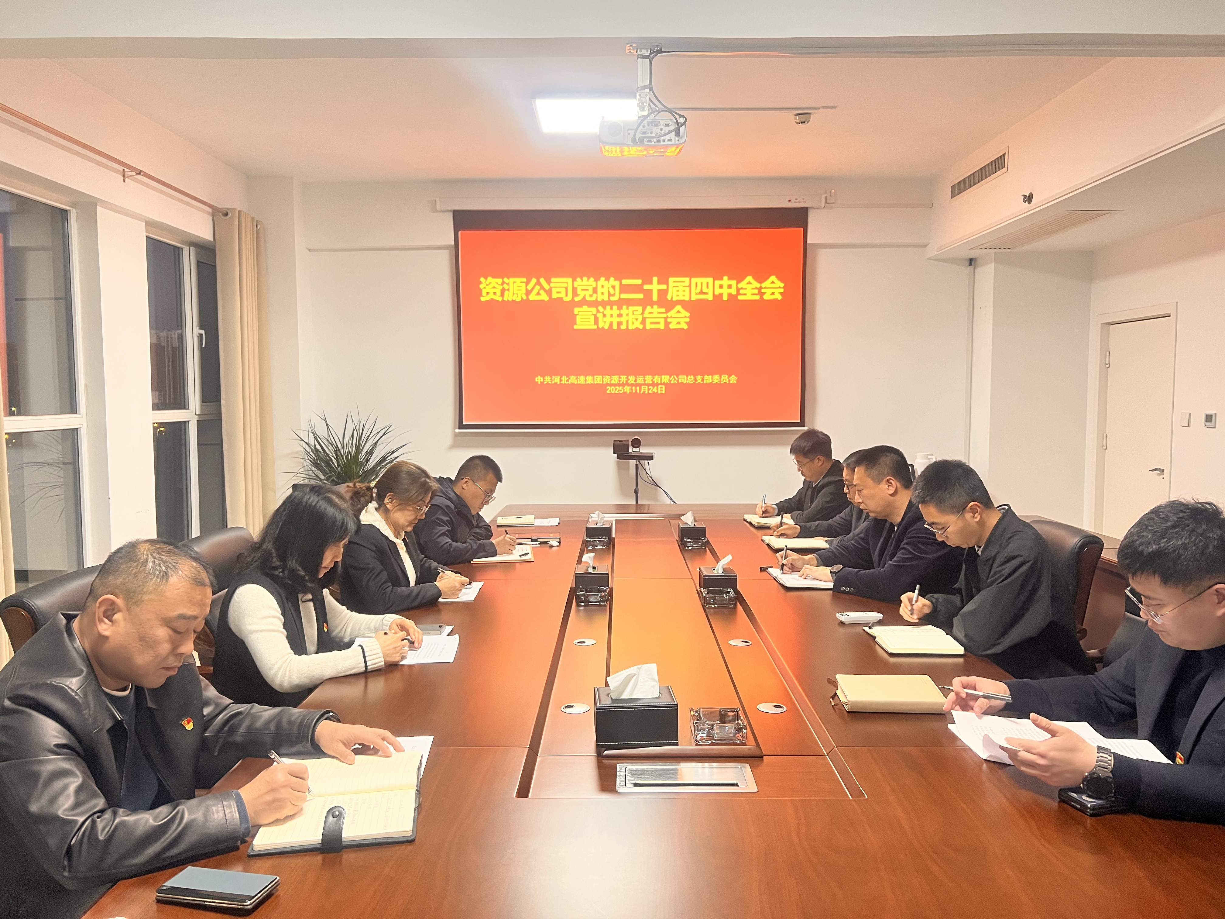 11月24日,为深入学习宣传贯彻党的二十届四中全会精神,教育引导广大党员干部职工切实把思想和行动统一到党中央决策部署上来,公司党总支书记、董事、总经理张云鹏同志以《深学细研全会精神 锚定目标奋力攻坚 以实干实绩谱写资源公司高质量发展新篇章》为题,为公司党员干部职工作了专题宣讲。