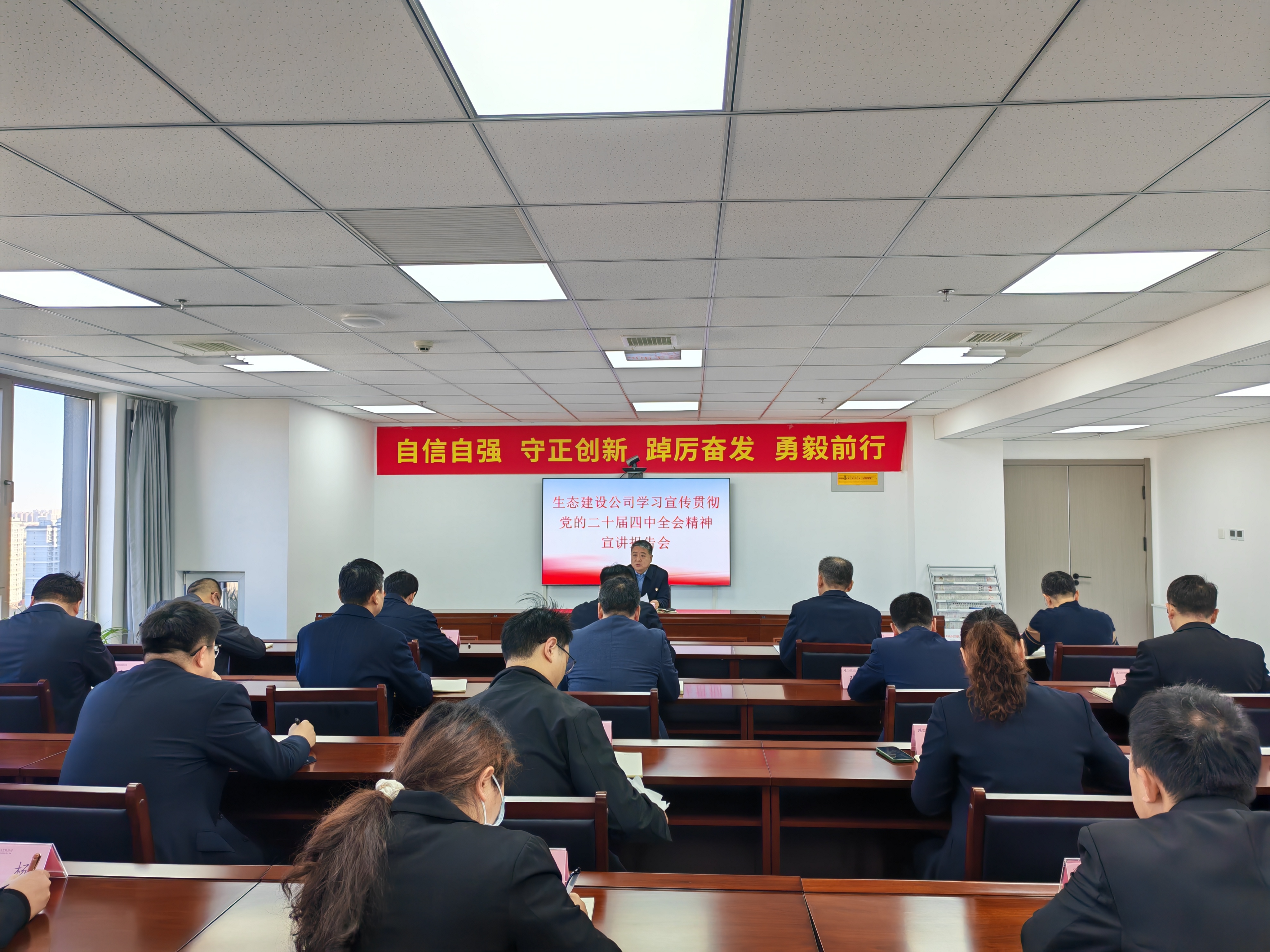 11月27日,生态建设公司党支部召开学习宣传贯彻党的二十届四中全会精神宣讲报告会,党支部书记、董事马明玉作专题宣讲,全体在岗干部职工参会。
