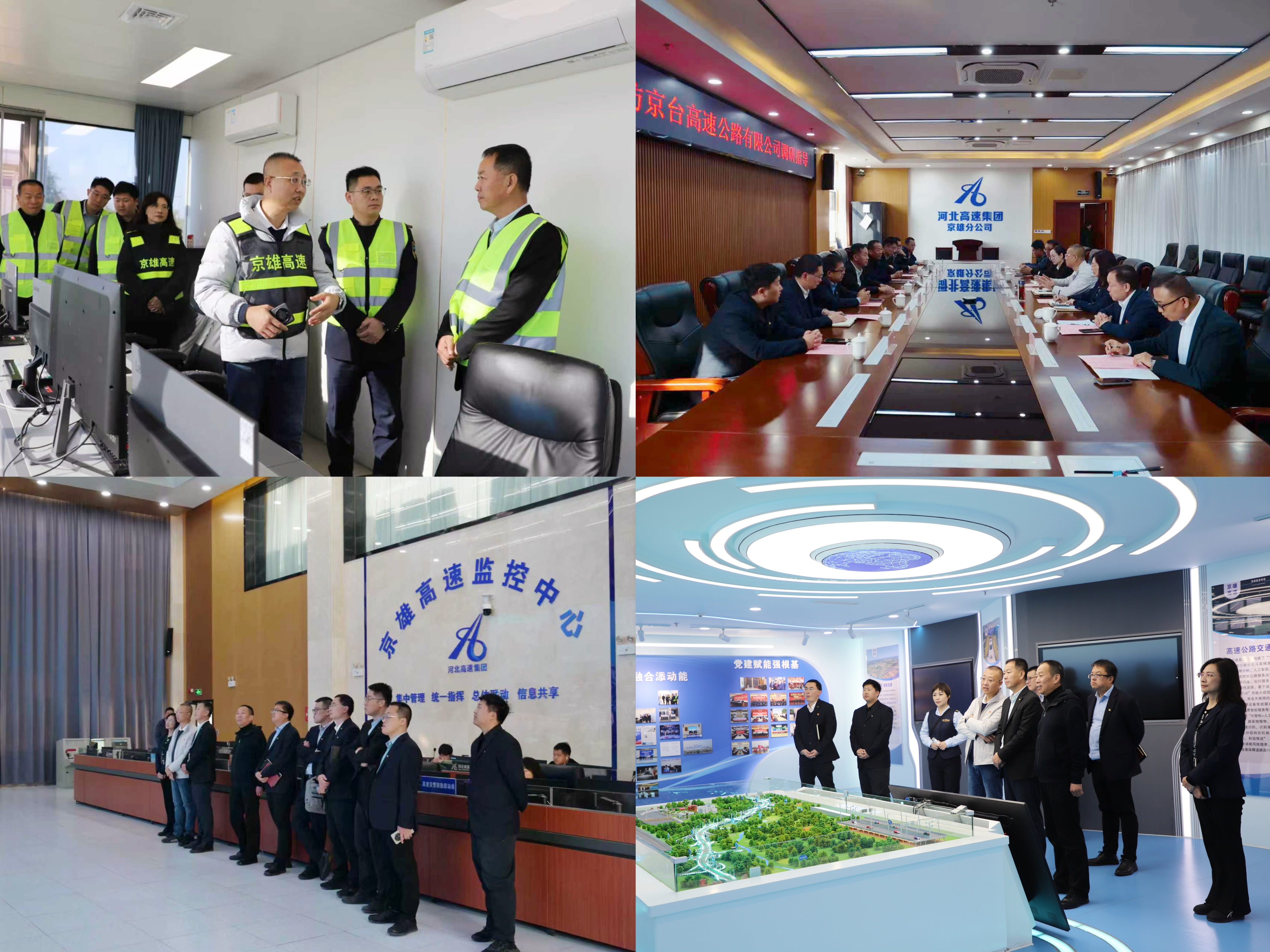 贺竹磬一行实地走访京雄分公司雄安北收费站,详细了解“准无人值守收费站”建设、收费机器人运行情况。在京雄分公司监控中心听取了关于全力打造“准全天候通行的智慧高速”示范路经验介绍,详细了解了京雄高速智慧化运维、路网预警监测系统建设、“云监管”职能作用发挥、京雄收费稽核系统运行、直播间建设等情况。参观了京雄智绘印象展厅,详细了解京雄高速施工建设及运营管理、智慧交通领域创新成果。