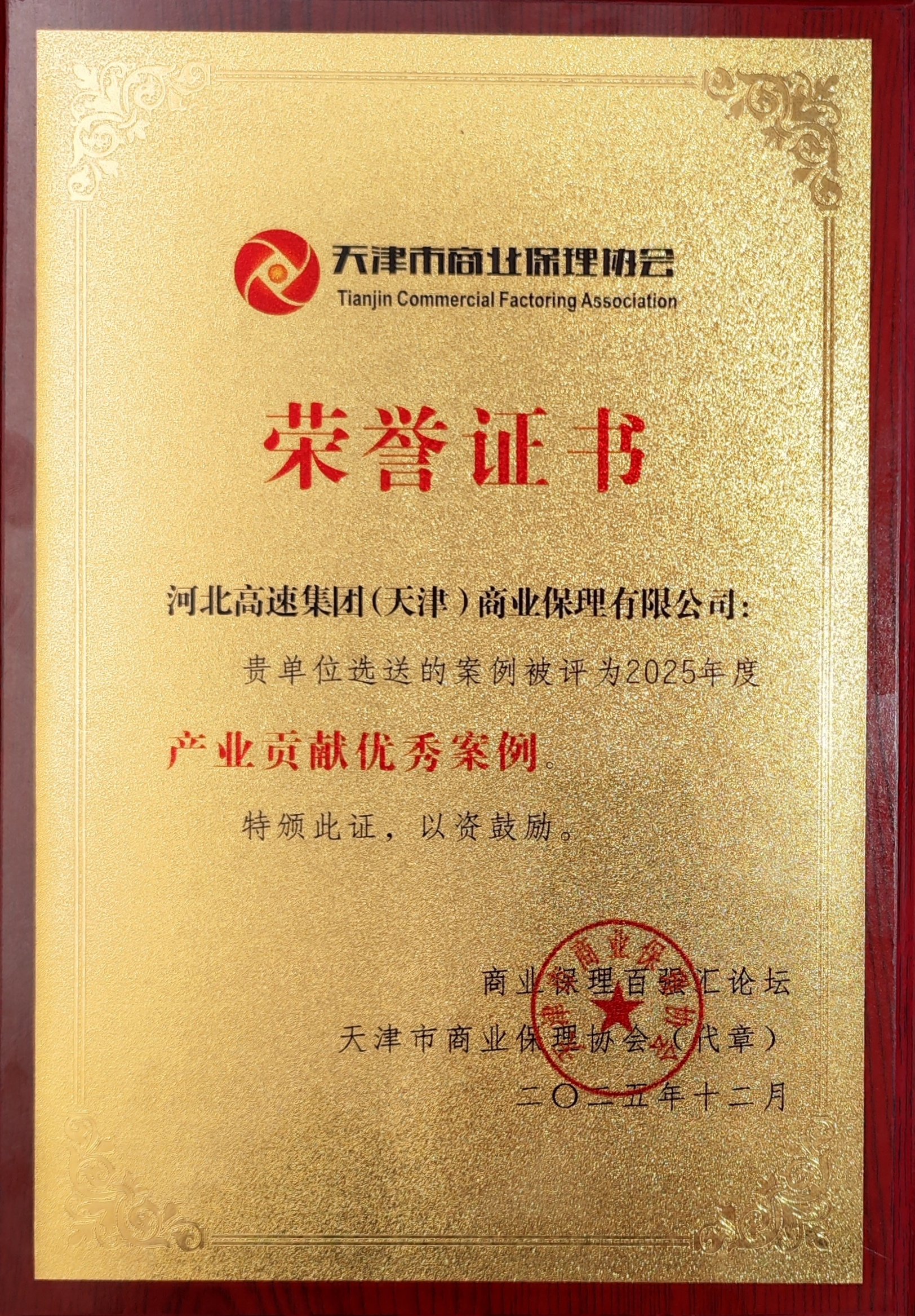 此次荣获“产业贡献优秀案例”,不仅标志着天津市商业保理协会与行业各界对商业保理公司业务创新能力及产业价值的高度认可,更提升了商业保理公司在行业的品牌知名度。商业保理公司将以此次获奖为契机,持续深化产融结合模式创新,拓展服务深度与广度,更好地为集团产业链上下游企业提供高效、专业的金融解决方案,助力集团产业链高质量发展。