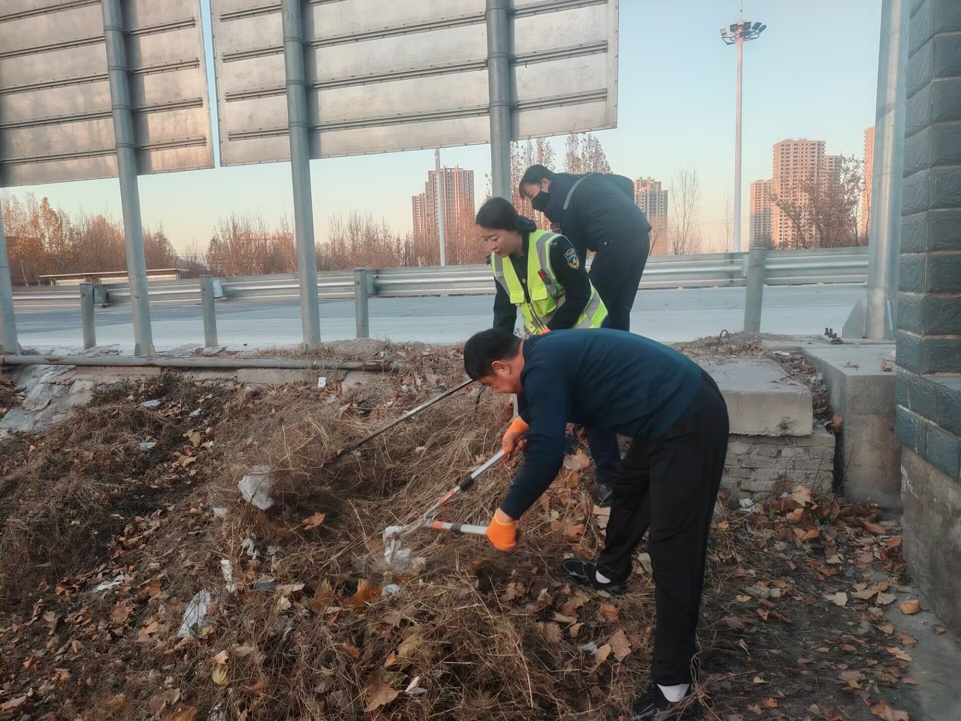 会后,新城站主要负责人立即带队,组织力量对站区开展全面排查整治。针对办公楼、杂物间等重点区域,进行了杂物集中清理,确保消防及应急通道时刻保持畅通无阻。同时,针对站区周边电线光缆密集、冬季杂草干燥易引发火灾的区域进行了彻底清理,形成了有效的防火隔离带,切实消除了潜在火灾隐患。