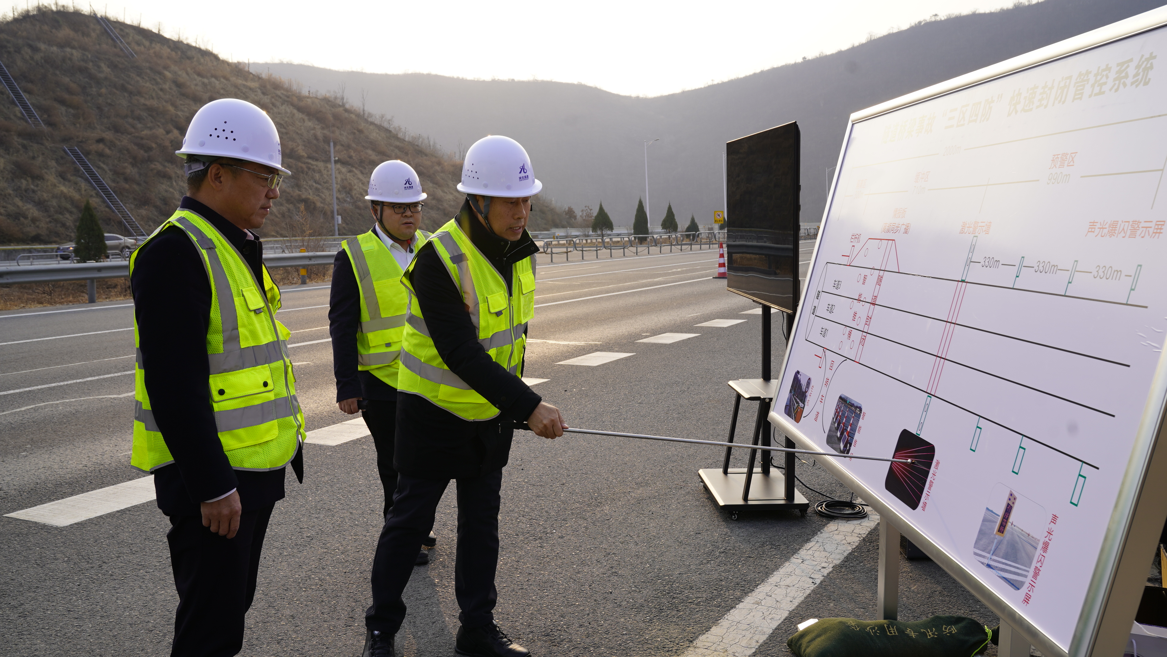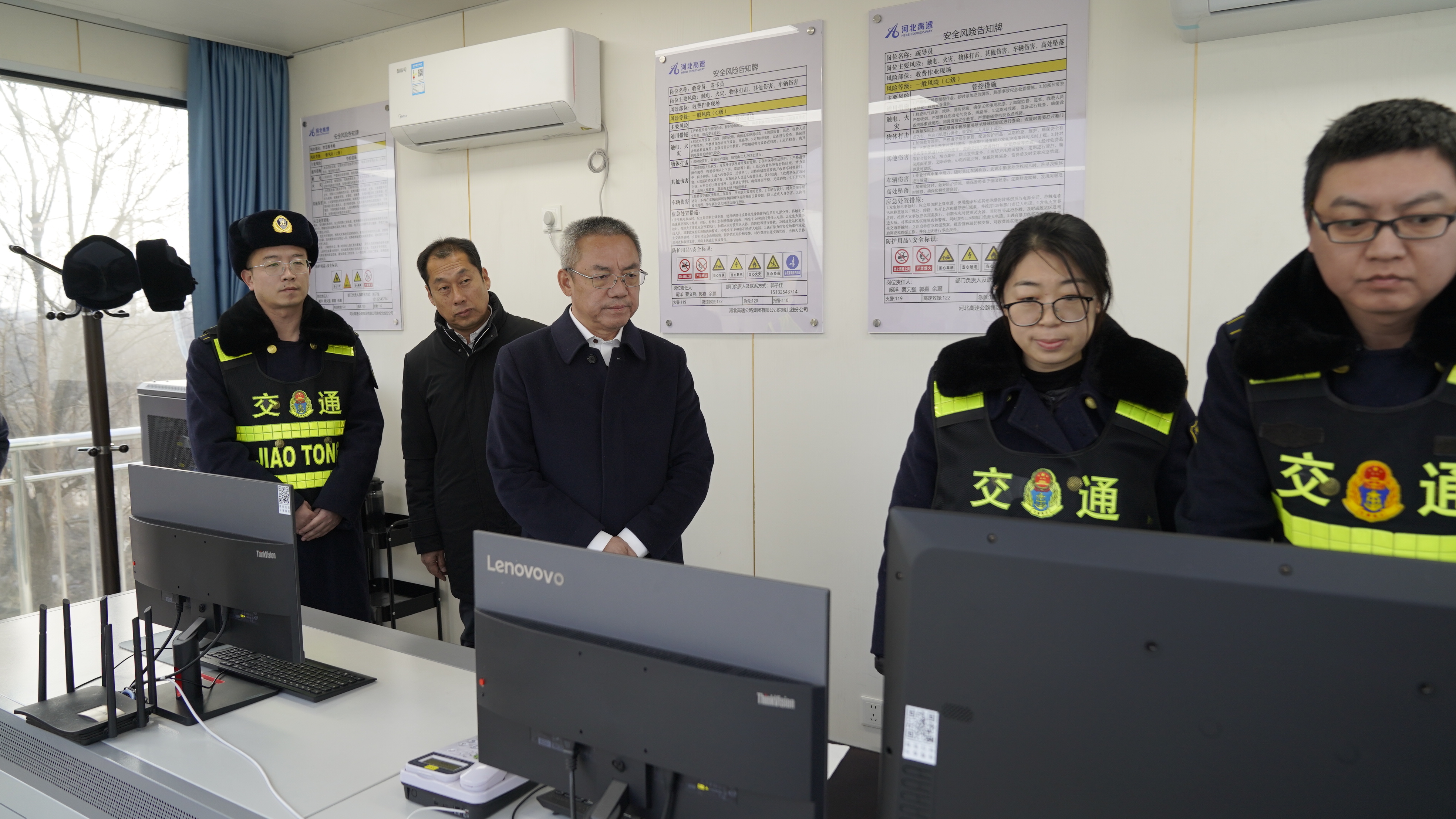 张建公一行在京秦高速(G0121)北京方向黄家山隧道口听取了隧道、桥梁事故“三区四防”快速封闭管控系统的功能原理、技术架构等情况汇报,现场观看了系统运行演示;在玉田北养护设备和物资存储地,详细询问了融雪剂等应急物资储备、除雪设备运转状态和一线作业人员配置情况,对近年来养护作业队在路段施工中具备哪些自主专项施工能力等进行询问了解;听取了资源公司负责人站区光伏发电项目建设进展及预期方面汇报;在玉田城北收费站广场听取了河北省首座轻量化智慧收费站建设及运营情况讲解汇报,围绕特殊事件处置流程、收费班组人员配置、现金缴费业务占比等具体工作与现场人员进行深入交流,了解查看了京哈北线分公司“同行服务”的开展情况。