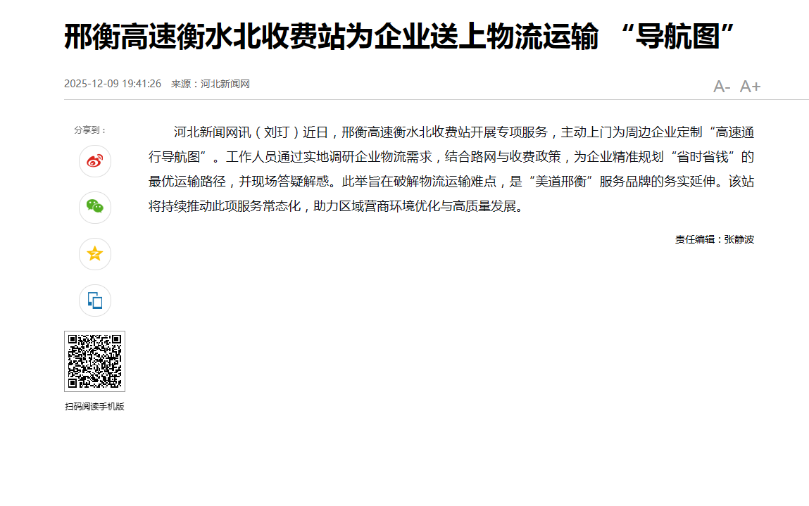 邢衡高速衡水北收费站为企业送上物流运输 “导航图”
