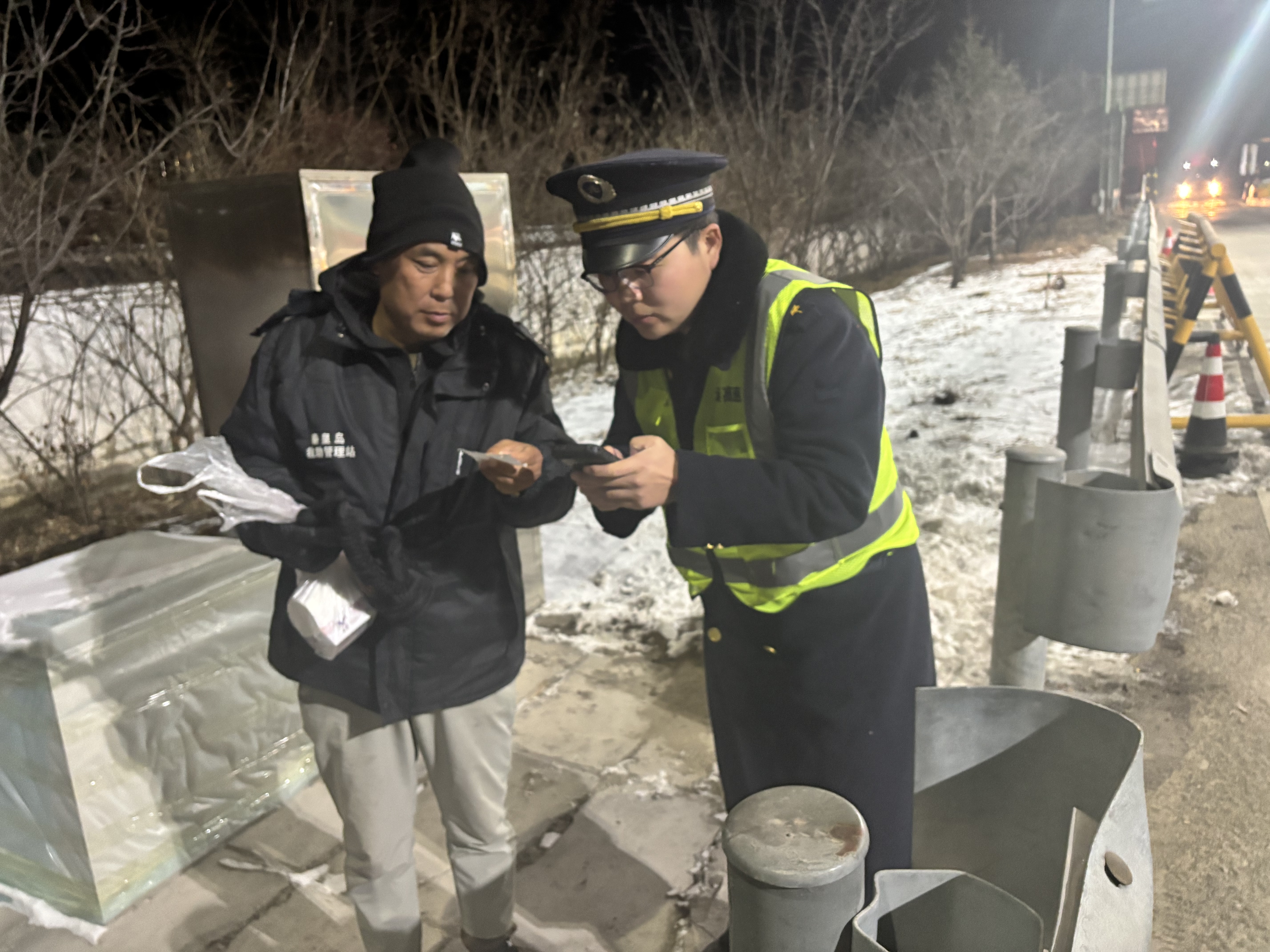 夜幕降临,寒意渐浓,茨榆山收费站的车道上,一名行人正步履匆匆向收费车道走来。收费班长发现这一情况后,立即上前关切询问。经了解,该行人打算搭乘客运车辆前往秦皇岛,却因手机欠费停机,无法联系到司机,一时陷入了困境。