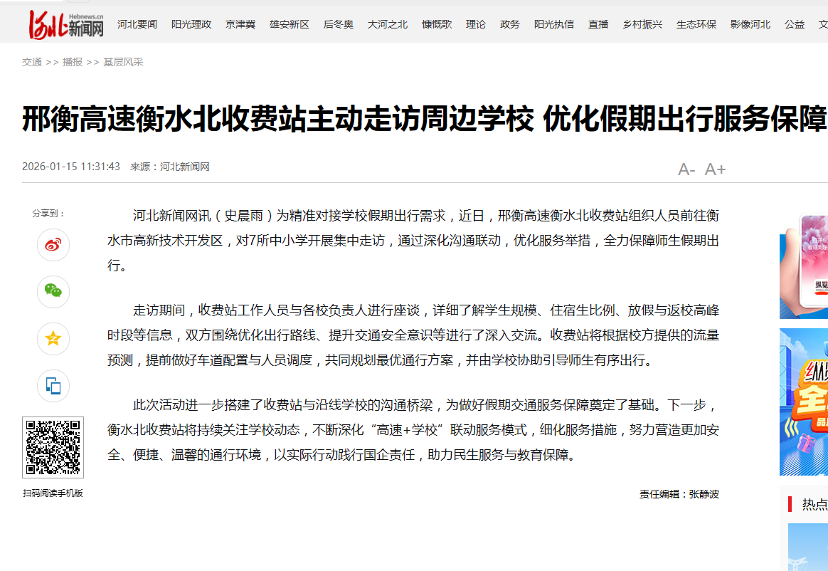 邢衡高速衡水北收费站主动走访周边学校 优化假期出行服务保障