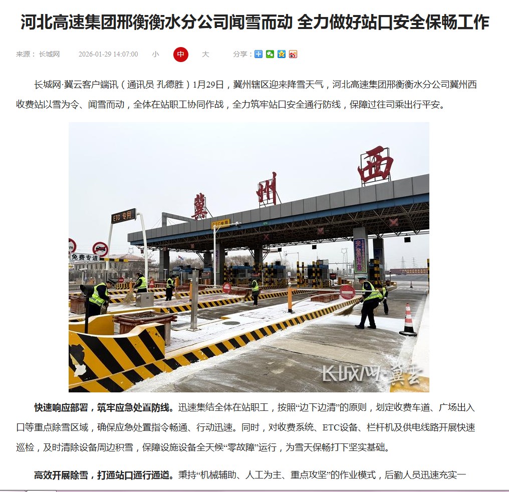 河北高速集团邢衡衡水分公司闻雪而动 全力做好站口安全保畅工作