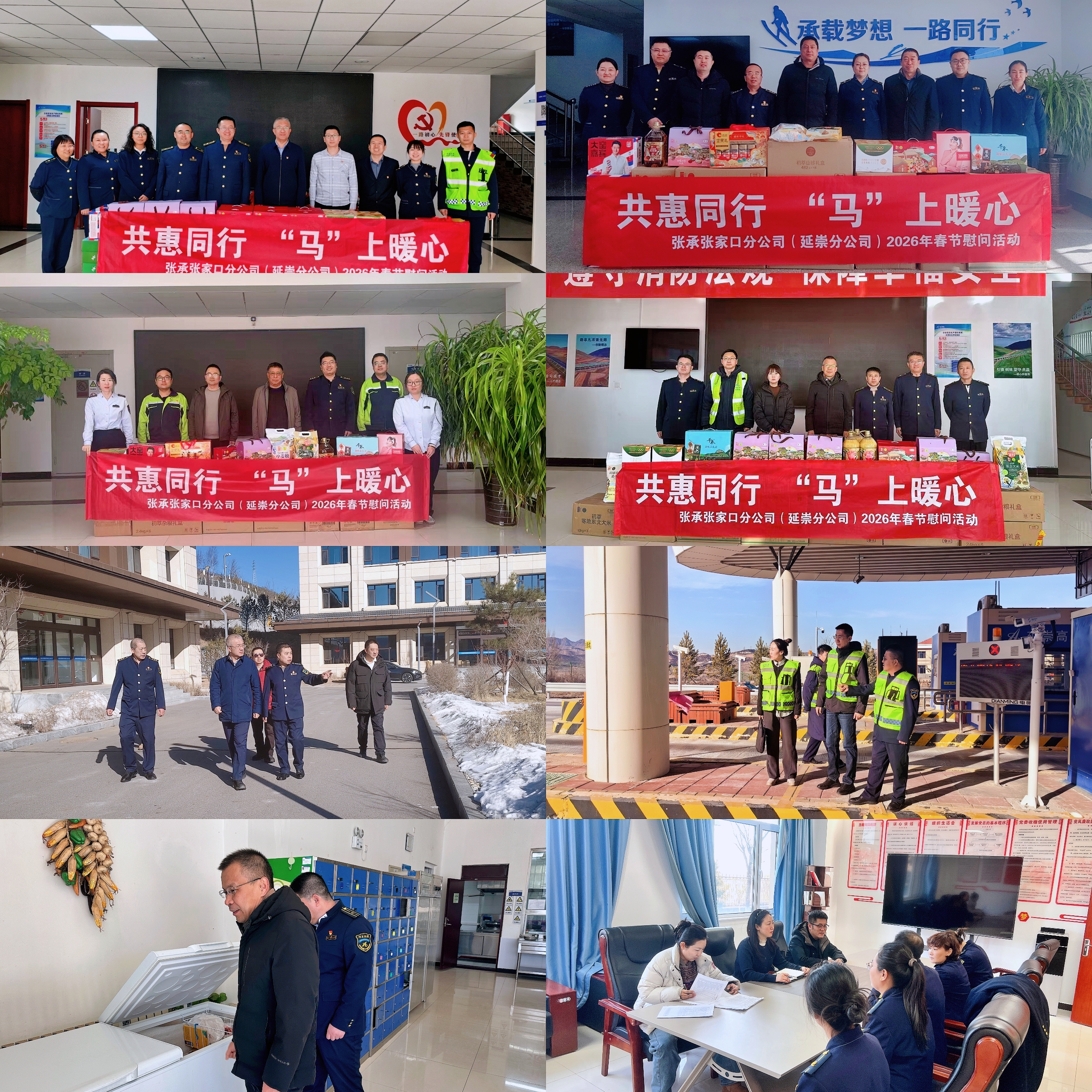 在2026年春节即将来临之际,2月3日至4日,张承张家口分公司(延崇分公司)领导班子成员分赴各收费站、隧道管理站及保通保畅应急大队,开展春节走访慰问,为坚守一线的职工送上新春礼品和节日祝福。