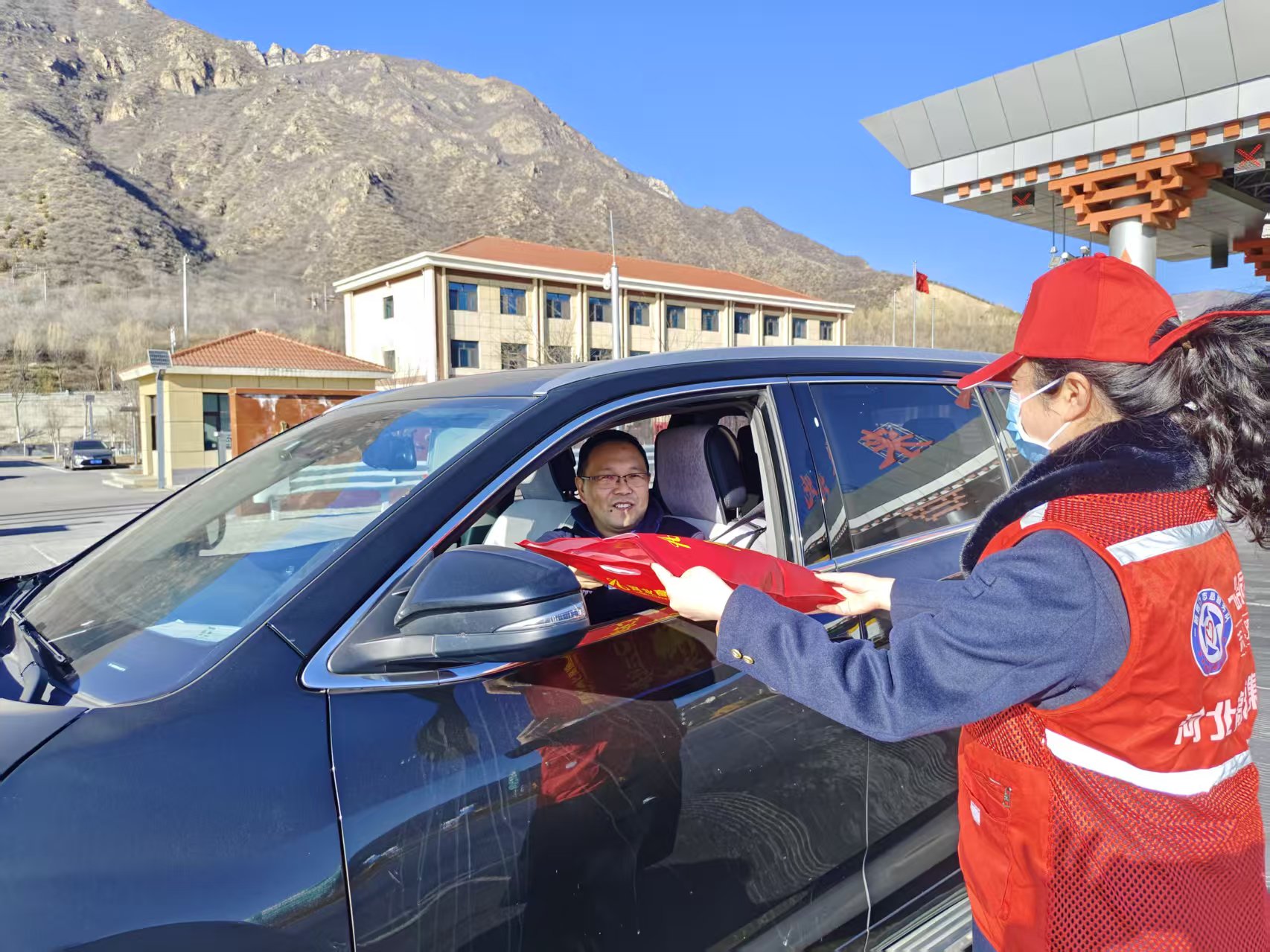 活动现场年味浓厚,工作人员身着红马甲,有序为司乘发放礼包。礼包内含春联、福字、窗花等新春饰品,以及靠垫等出行必备品,兼顾节日氛围与实用需求,承载着河北高速的诚挚祝福。工作人员主动上前递上礼包,提醒司机保持安全车距、切勿疲劳驾驶,解答路况咨询等疑问。与此同时,收费站安排专人前往周边加油站等企业,为企业工作人员送去新春礼包,向长期以来支持春运保障、服务群众出行的企业伙伴致以新春祝福,感谢其在春运期间的默默坚守与鼎力配合。返乡司机与企业工作人员纷纷为这份贴心又暖心的服务点赞。