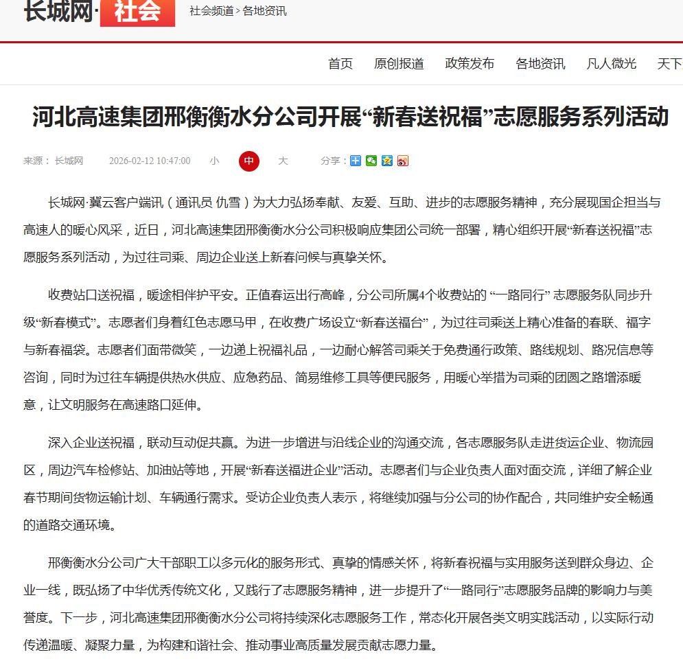 河北高速集团邢衡衡水分公司开展“新春送祝福”志愿服务系列活动
