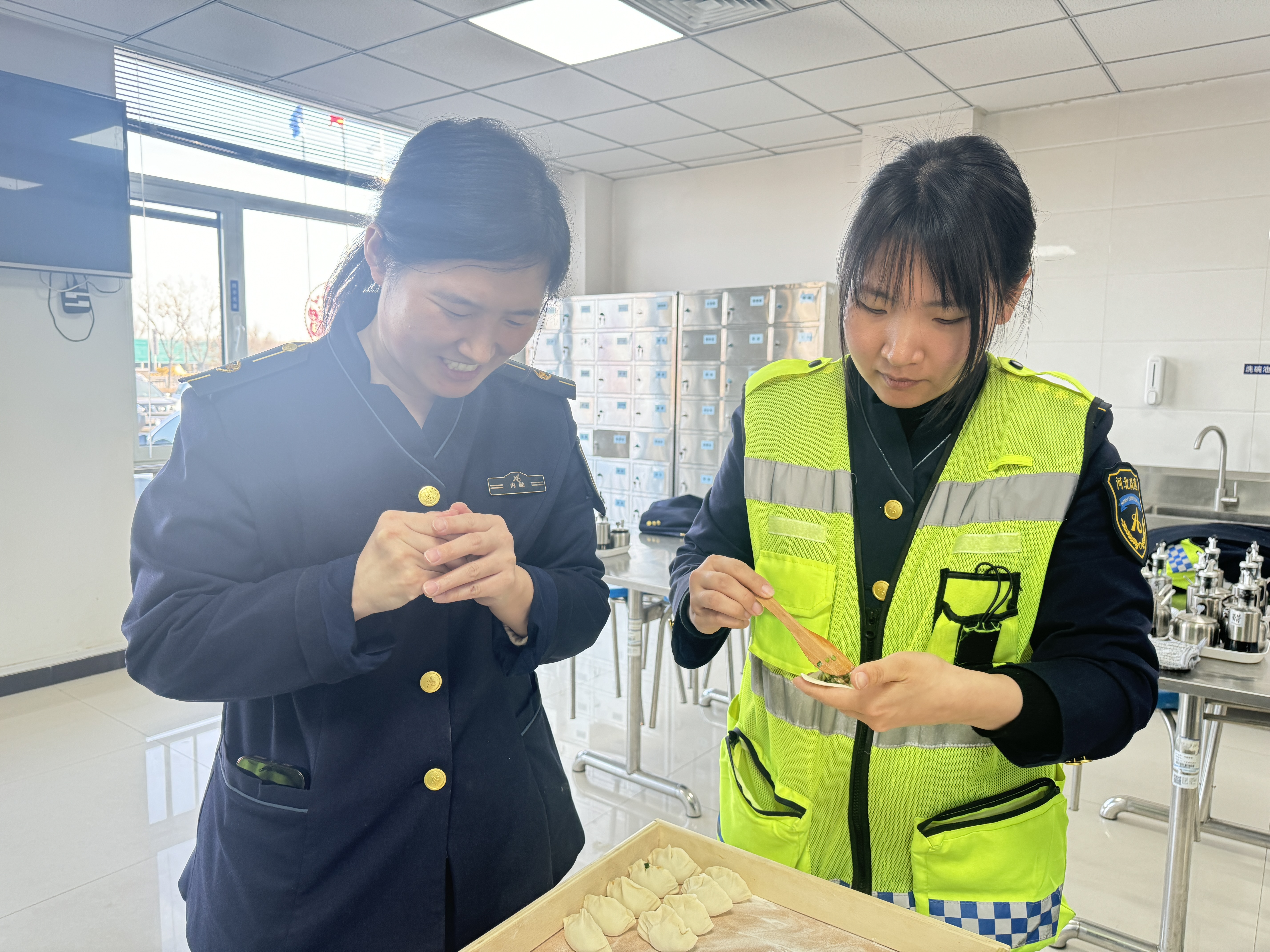 活动现场热闹非凡,职工们围坐在一起,分工协作、各显身手。揉面、擀皮、包馅、捏褶,大家动作娴熟、配合默契,一边忙碌一边交流家常,分享新年心愿。不一会儿,一个个饱满精致的饺子摆满餐盘,元宝造型承载着平安顺遂的美好祝福,喜庆的春联、红灯笼将站区装点得年味十足。