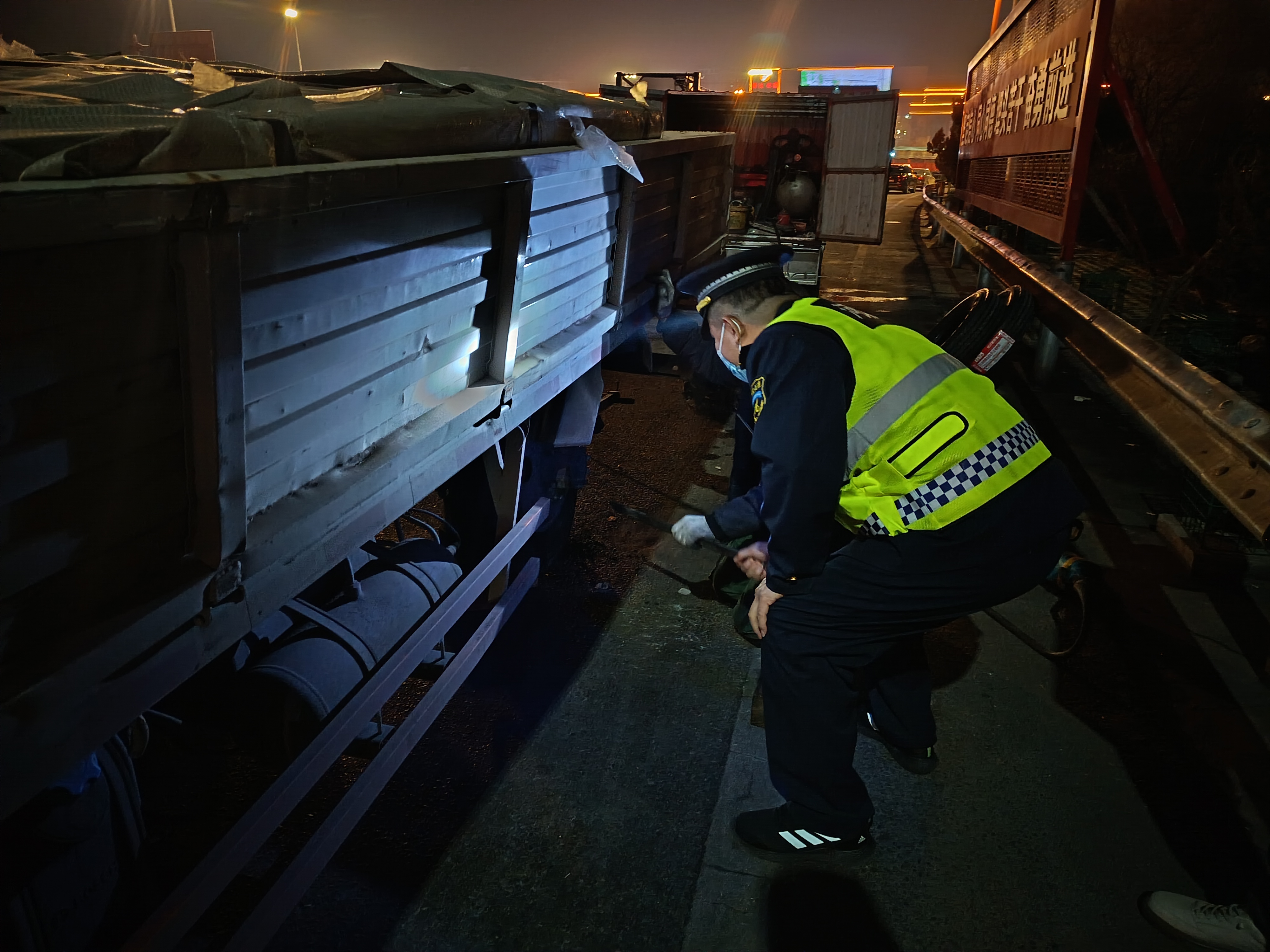 2月24日晚上十点半左右,一辆蓝牌货车驶入青县收费站,正在广场疏导车辆的班长张玉松发现该车右后侧轮胎完全瘪了,立即上前提醒驾驶员。驾驶员表示他正是发现车辆爆胎,才赶紧下高速来修车。