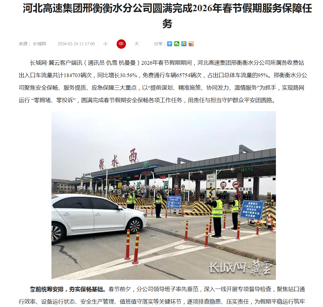 河北高速集团邢衡衡水分公司圆满完成2026年春节假期服务保障任务