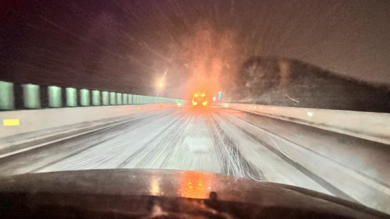 寒风中,除雪机械轰鸣作业,队员们连续奋战、不畏严寒。针对桥梁、弯道等易结冰重点路段,优先撒布融雪剂,严防路面结冰。大家坚守岗位、分工协作,最大限度降低降雪对交通出行的影响。