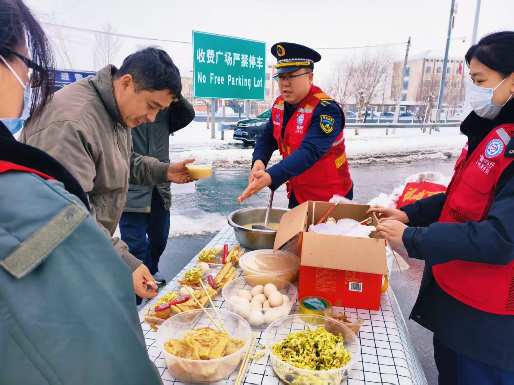 同时,马立伟还将部分等待乘车的旅客引导至温暖的警卫厅内休息,为他们提供热水,耐心解答通行疑问。一张张热气腾腾的餐食、一处温暖的临时休憩地,不仅驱散了司乘们的寒冷与焦虑,更彰显了铺上收费站以人为本的服务理念。此次暖心举措赢得了滞留司乘的一致好评,大家纷纷为收费站的贴心服务点赞。