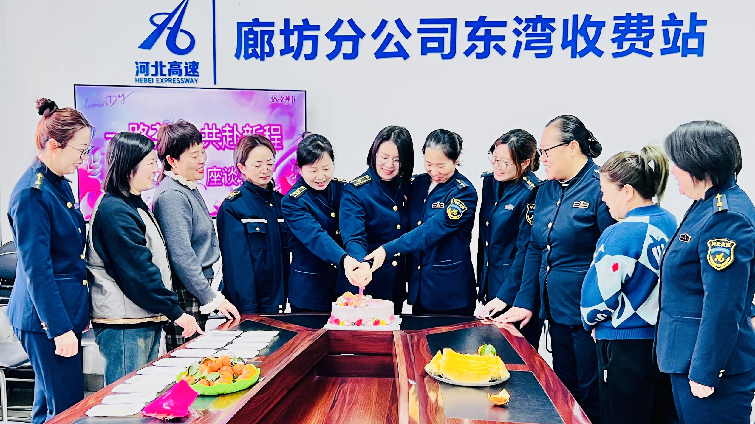 “提前祝大家节日快乐!”“这段时间辛苦了!”3月5日,东湾收费站会议室内暖意融融,一场以“一路芬芳 共赴新程”为主题的“三八”妇女节座谈会正在举行,全站女职工围坐在一起,聊工作、谈生活、话成长。