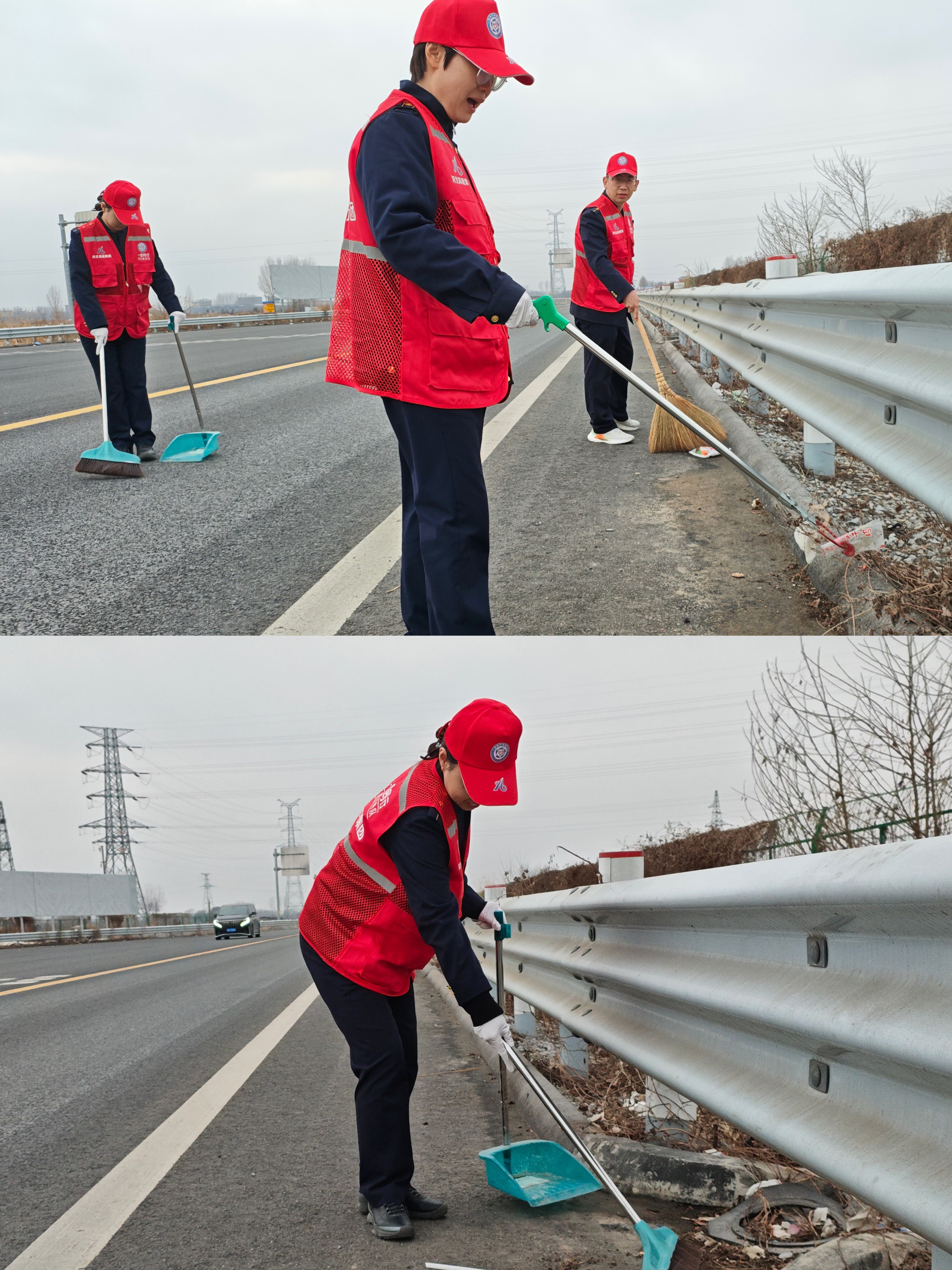 活动中,志愿者们身着红色志愿马甲,充分发扬雷锋同志不怕苦、不怕累、不怕脏的奉献精神,手持扫帚、簸箕、夹子等工具,对收费站连接线及周边道路开展全面清理整治。