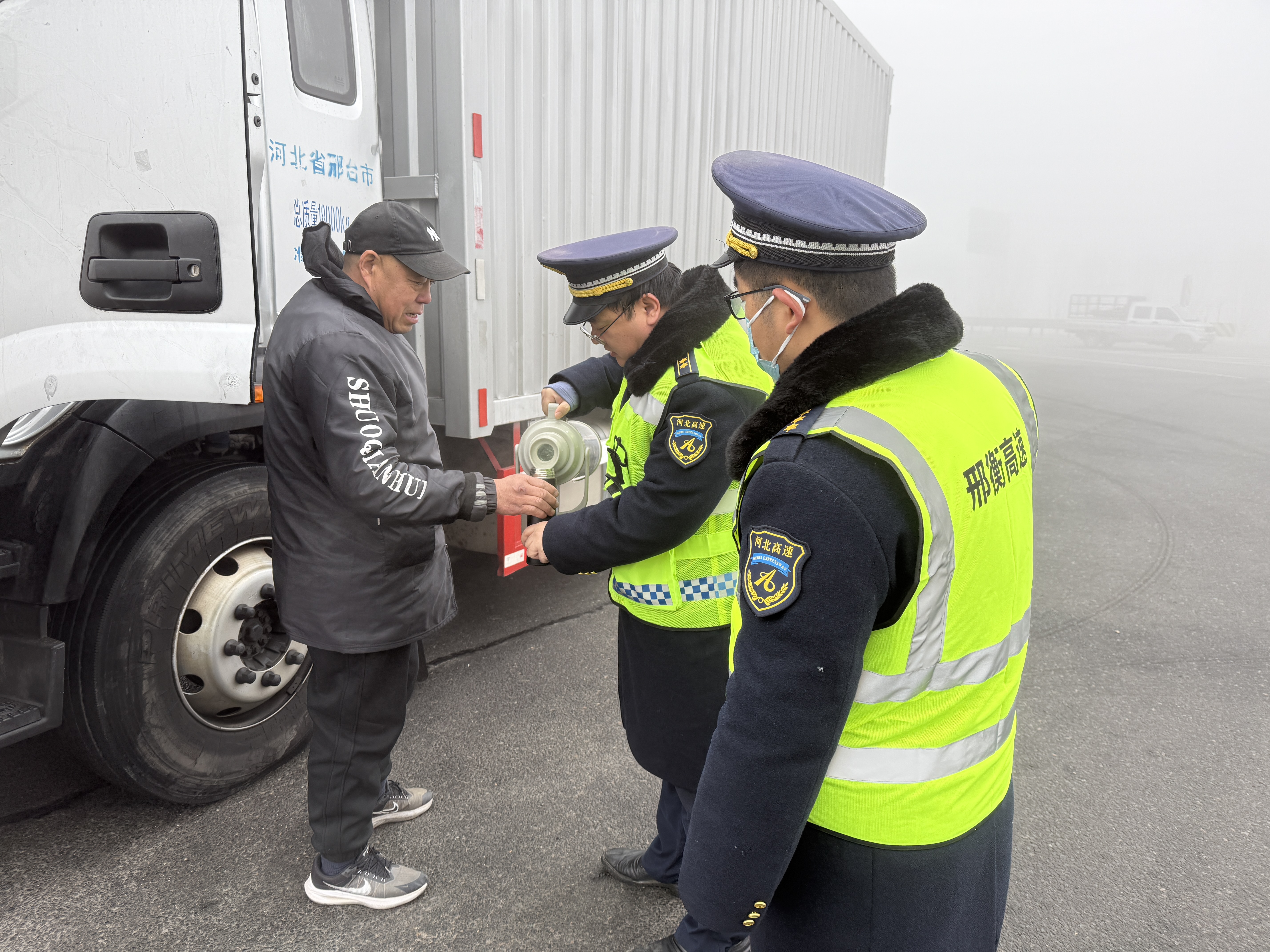 冀州西收费站大雾天气站口送温暖