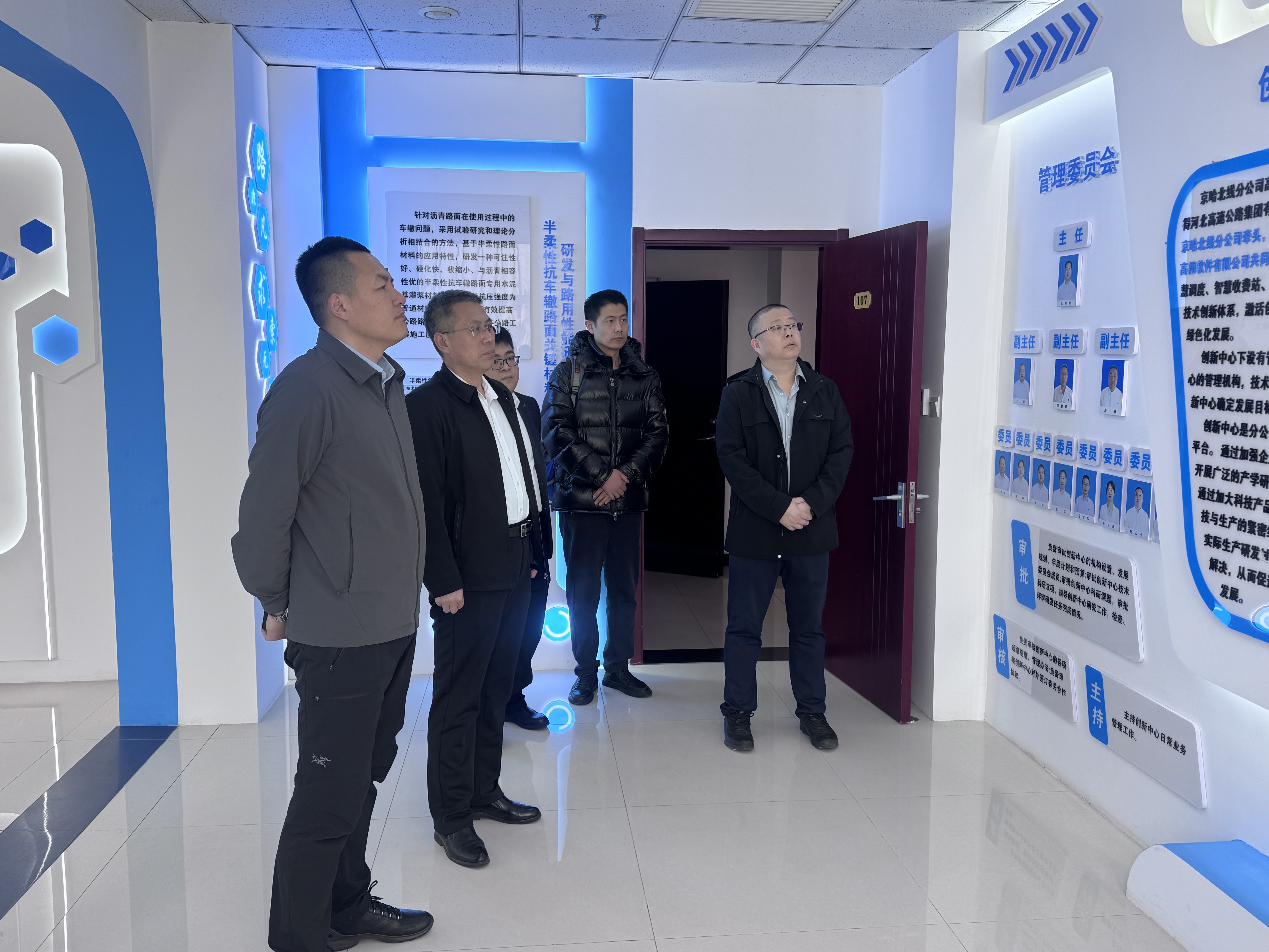 闫梦强一行先后参观分公司数智化技术创新中心、指挥调度中心监控大厅,实地了解京秦高速运营场景与数智化建设成效,对分公司在高速公路运营管理智能化转型中的实践成果给予高度认可。