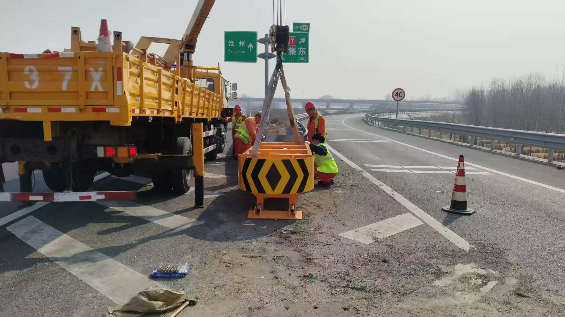 为保障管养路段安全畅通,切实消除道路交通安全隐患,3月16日,河北高速集团养护分公司沧州分中心衡水养护队快速响应、高效作业,顺利完成黄石高速沧州方向K155+000处防撞垫更换工作,以实际行动捍卫安全防线。
