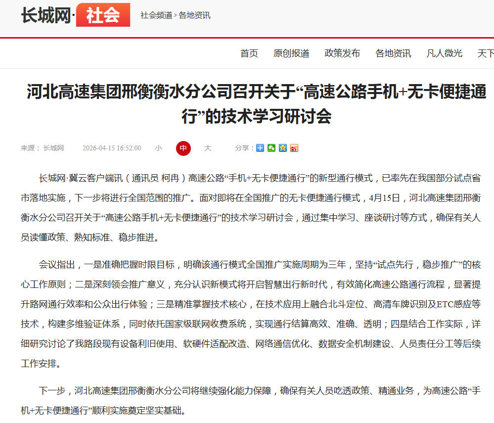 河北高速集团邢衡衡水分公司召开关于“高速公路手机+无卡便捷通行”的技术学习研讨会
