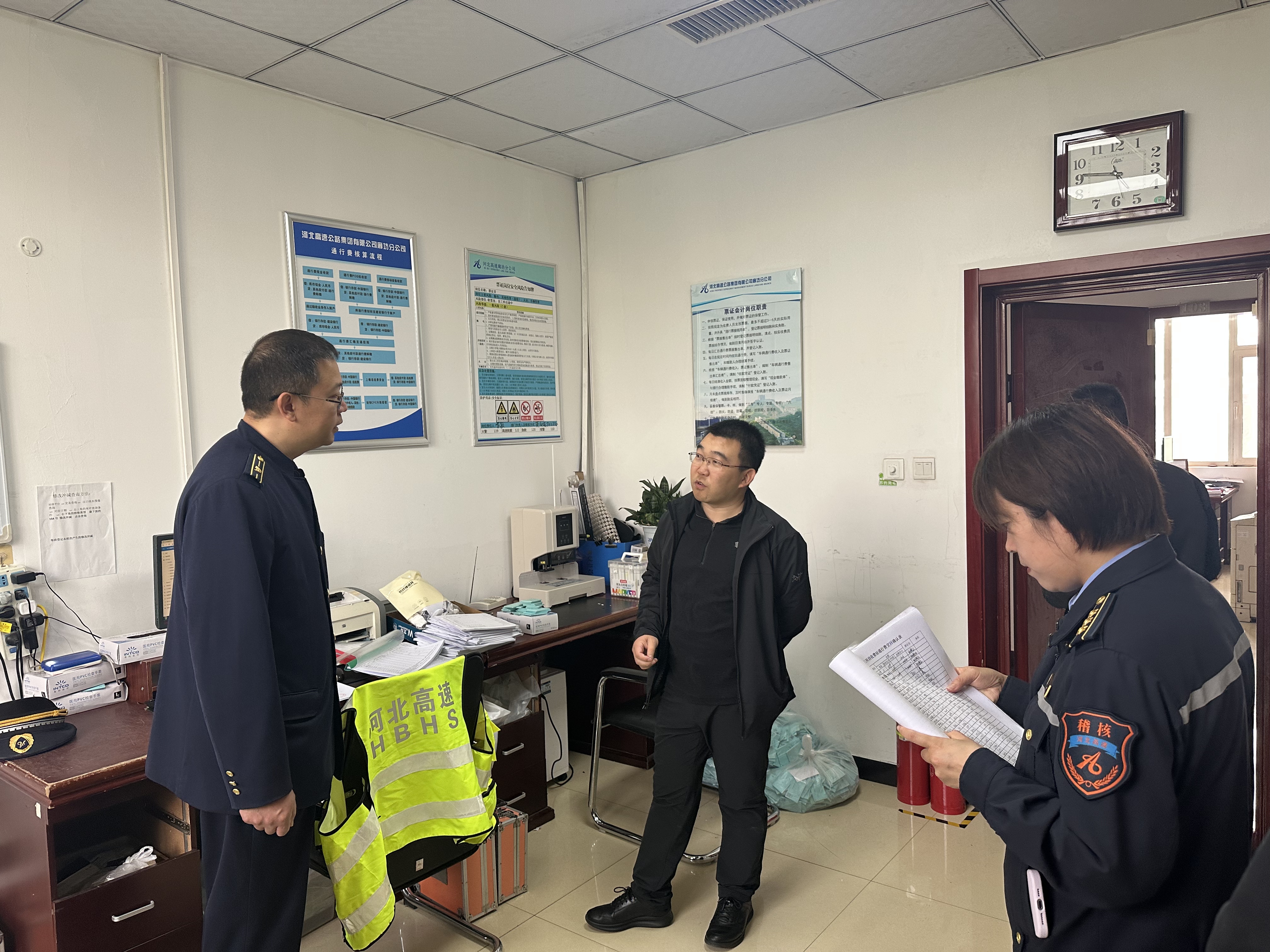 为进一步压实安全生产主体责任,筑牢收费站安全运营防线,4月17日上午,廊坊分公司副总经理李晓伟到三河西收费站,开展安全生产专项督导检查工作,分公司事业发展部经理及运营管理部、稽核管理中心等相关人员陪同检查。