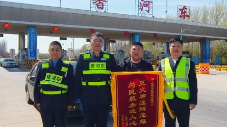 ​4月20日,一面印有“热心救助显真情,高速卫士暖人心”的锦旗,被家属王女士专程送到了香河收费站,以此表达对站内工作人员及时救助、化解险情的感激之情。[详细]