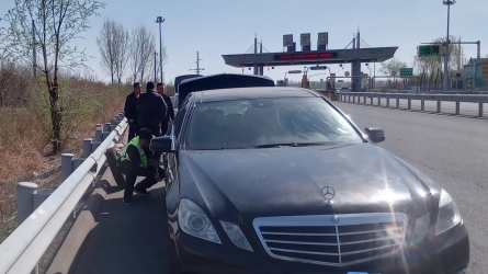 4月5日清明节当天,高速上车流密集。一辆蒙D牌照黑色奔驰轿车在临近三河南收费站时突发爆胎,司机冷静将车辆开至收费站外广场停靠。[详细]