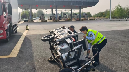 廊坊分公司广阳收费站:老人误入收费广场不慎翻车 疏导员紧急出手化身“护航人”