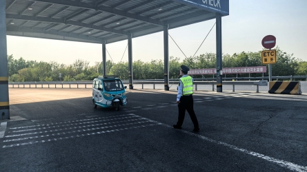 廊坊分公司万庄收费站:代步车误入高速 收费员及时劝返