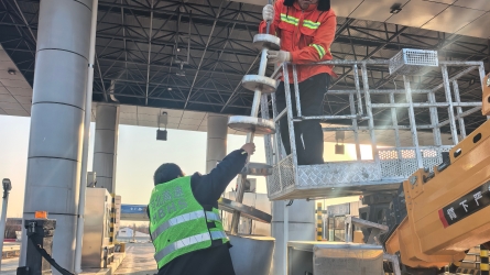 1月6日,受大风天气影响,大厂东收费站大棚顶部的避雷针突发断裂,对下方通行车辆、司乘人员及站区设施设备构成严重威胁。[详细]