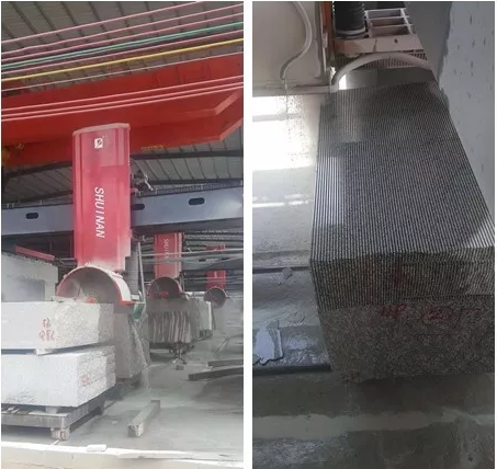 为进一步符合当下市场需求,服务板材切割高质量发展,水南机械结合多片桥切机和高效组合锯的所有特点,独立开发出了全新的板材切割神器——双梁龙门切石机,该机台为我司发明的专利产品,也在这次的石材展中登场亮相。