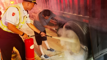 2024-11-20 12:00:0011月18日8时40分,一辆蓝牌货车在收费广场准备上道时,所载货物突然发生自燃,情况十分危机,班长白晨光发现这一情况后,立刻和疏导员迅速从门卫室取来灭火器,冲到现场,告知驾驶员打开双闪,另一名疏导员在安全位...[详细]