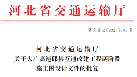 由河北高速集团工程咨询有限公司承担勘察设计的大广高速邱县互通改建工程两阶段施工图设计顺利取得河北省交通运输厅批复。[详细]